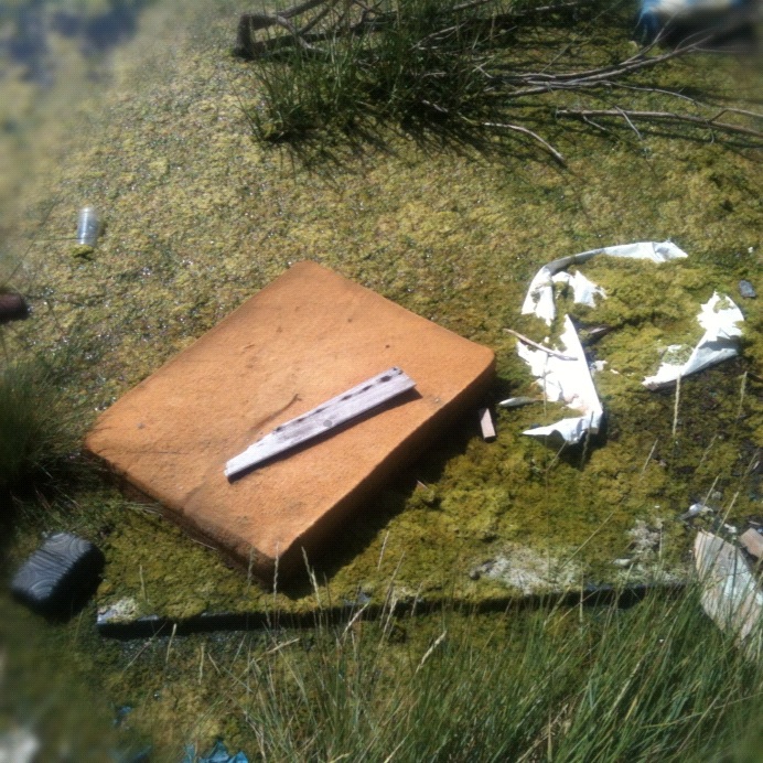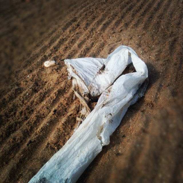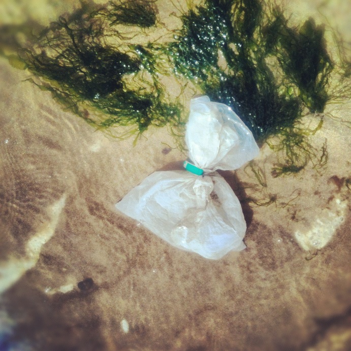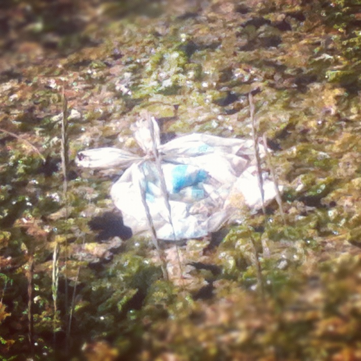 Plastic loop, bag and bottle in inlet in the isle of Sheppey