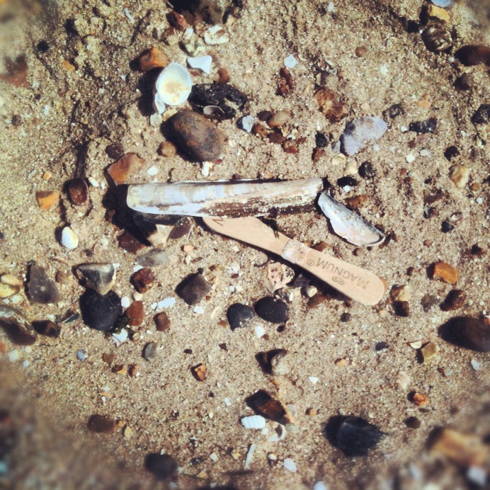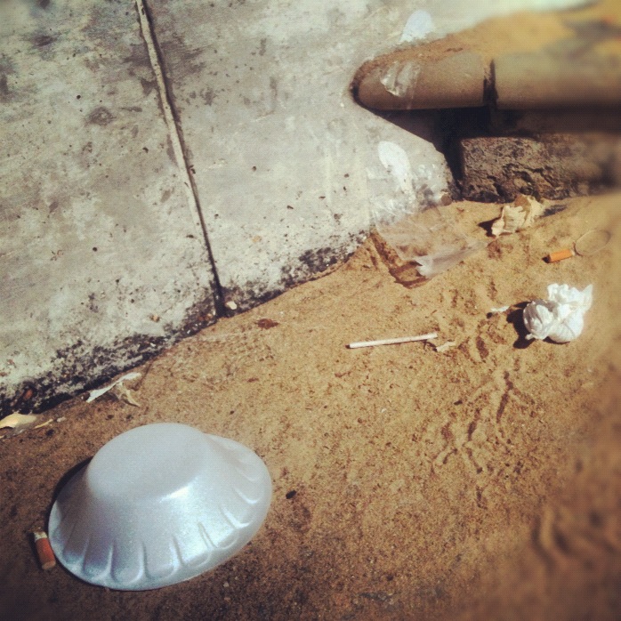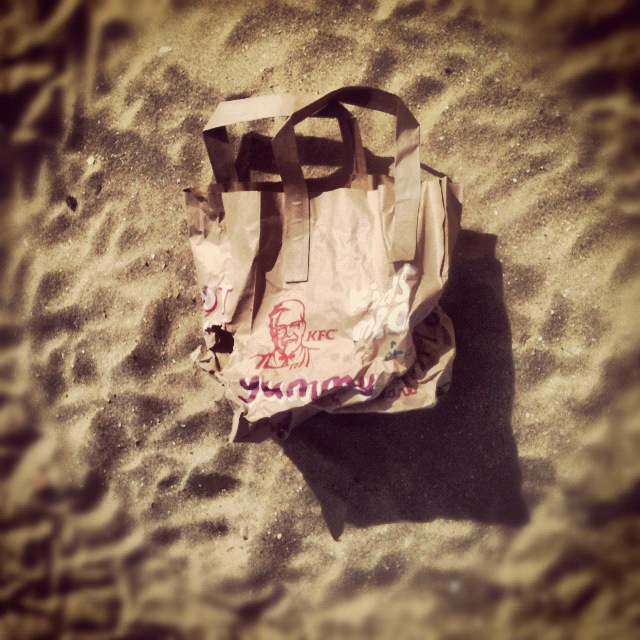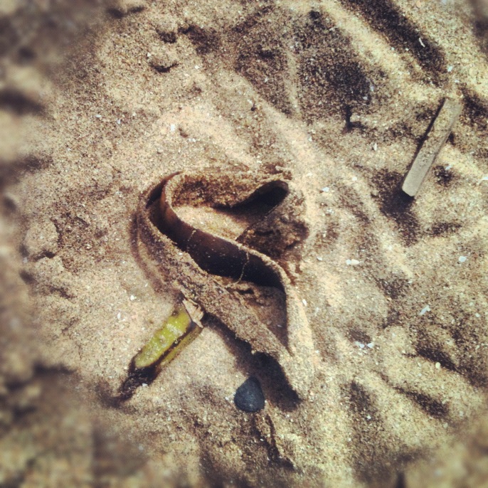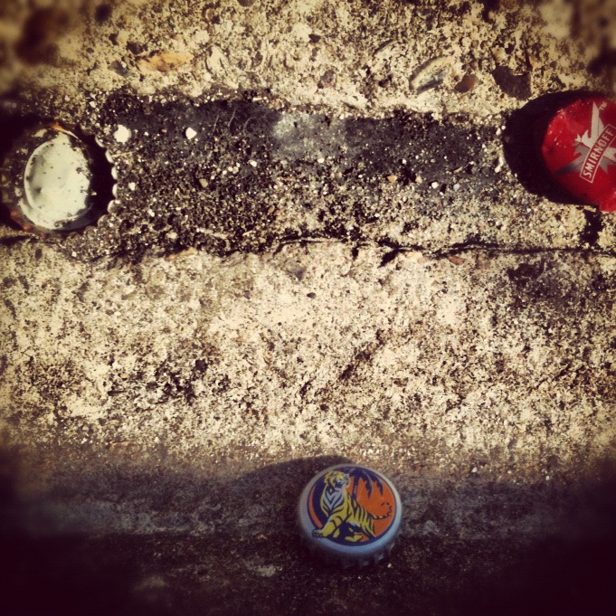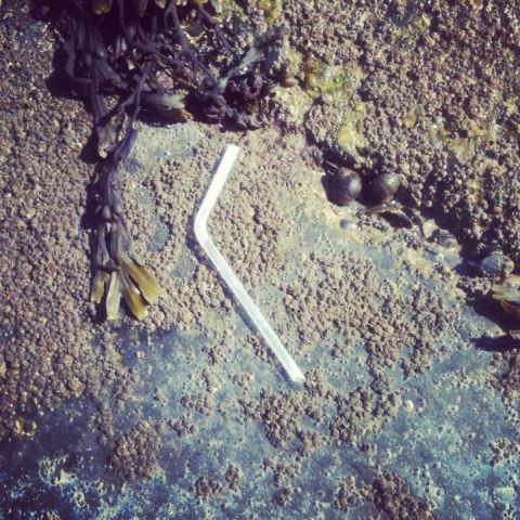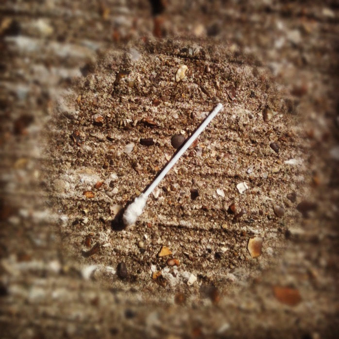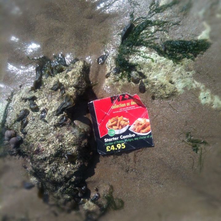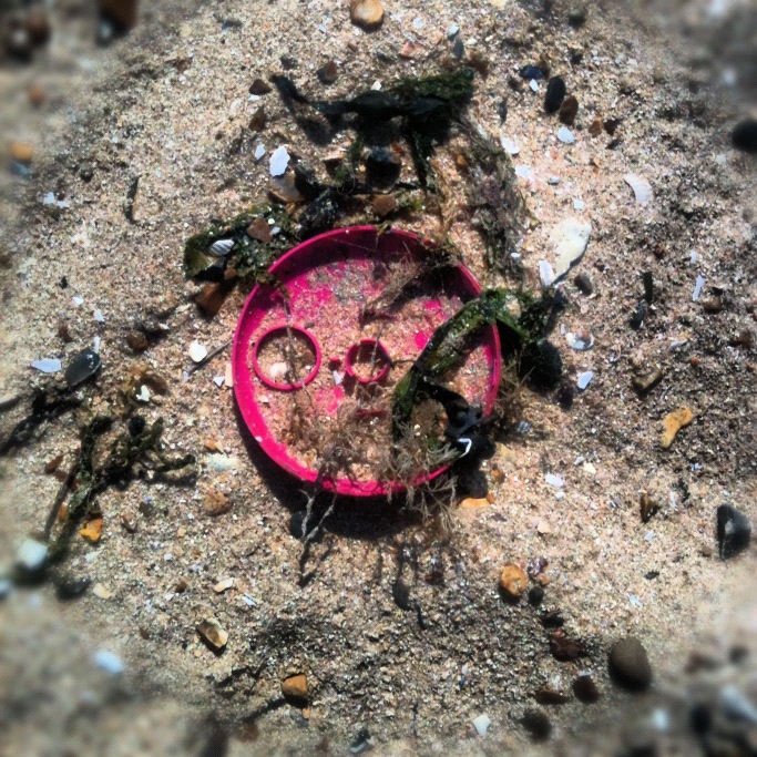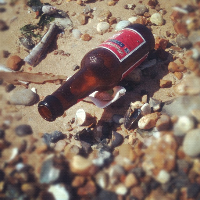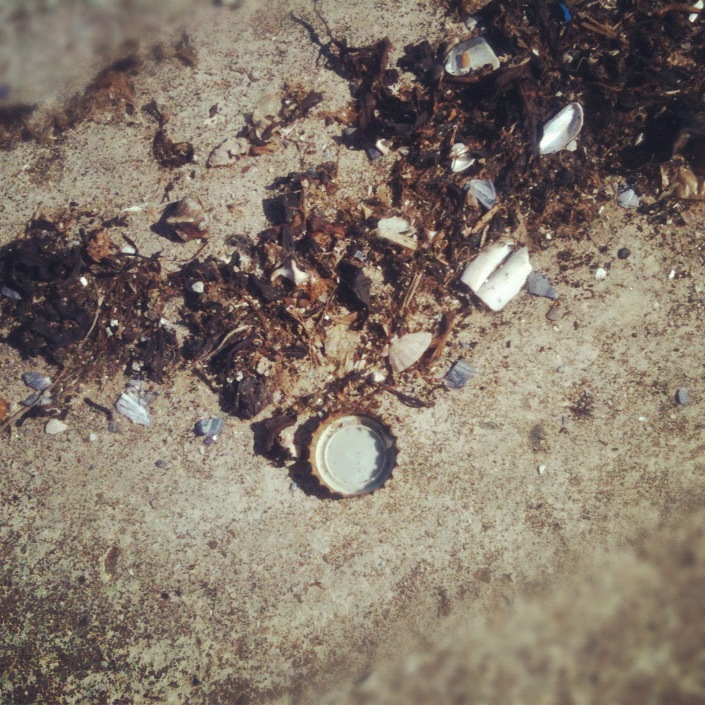 Beer bottle top and plastic along the shore at Birchington on Sea