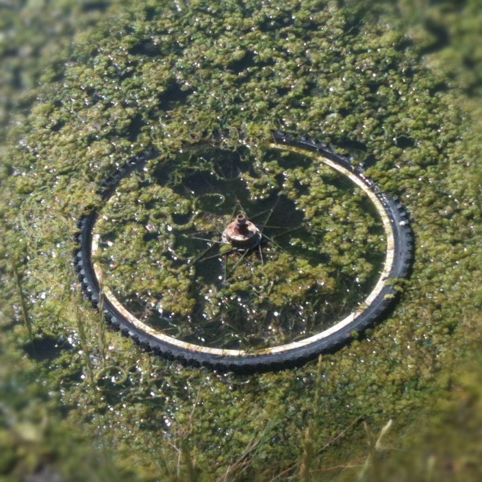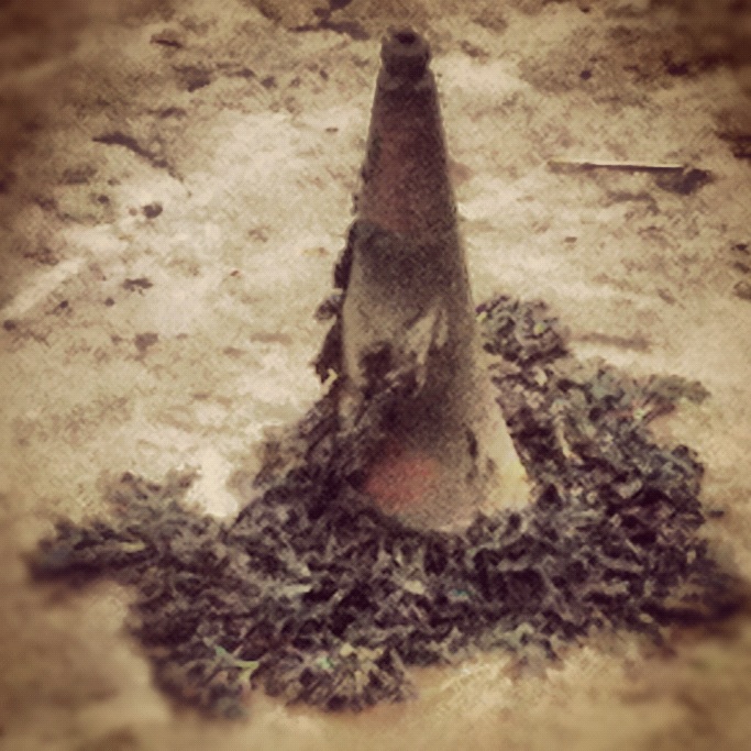 Traffic cone with seaweed grown round found in inlet near Rochester